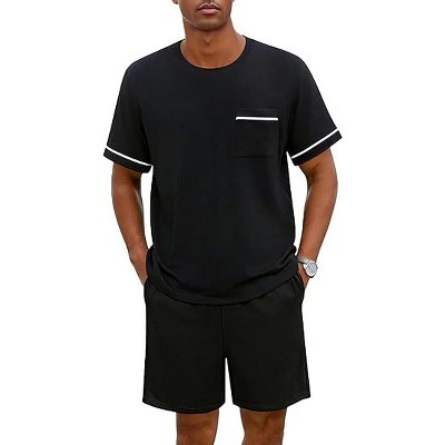 Ekouaer Men Pajama Set Summer Short Sleeve Shirts And Shorts 2 Piece Lounge Sets With Pockets