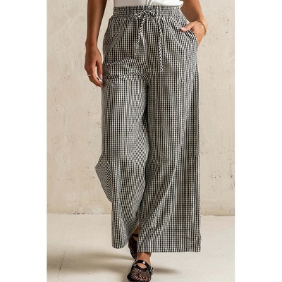 Attraco Women's Gingham Wide Leg Pants with Drawstring Waist & Pockets