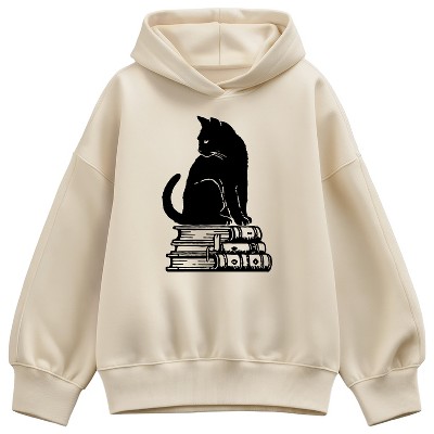 Juniors Womens Lost Gods Halloween Full Moon Black Cat Heart Cowl Neck Sweatshirt