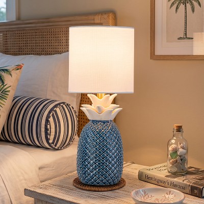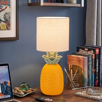 C Cattleya 16.25" Pineapple Ceramic Table Lamp with Linen Shade, Novelty Desk Lamp for Nightstand,Bedroom