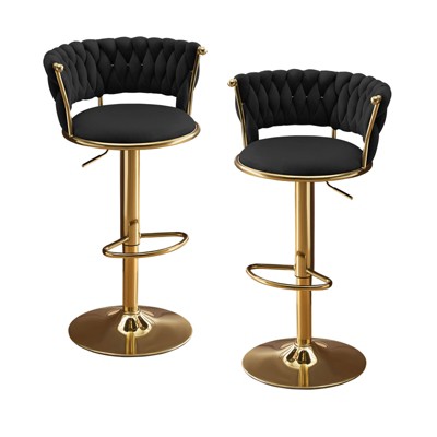 HomeRoots Set of Two Black and Gold Velvet and Metal Low Back Adjustable Height Swivel Bar Chairs