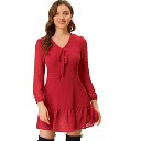 Women's V-Neck Mini Dress Long Lantern Sleeve Loose Fit Dress Open Back Dress