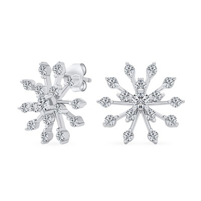 Bling Jewelry Holiday Party Flower Christmas Frozen Winter Cubic Zirconia Encrusted CZ Large Snowflake Stud Earrings Sterling Silver