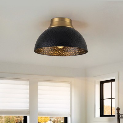 LLHZSY 11 4/5" Modern 3-Light Flush Mount Ceiling Light with Hammered Dome Shade, Black Metal with Gold Accent