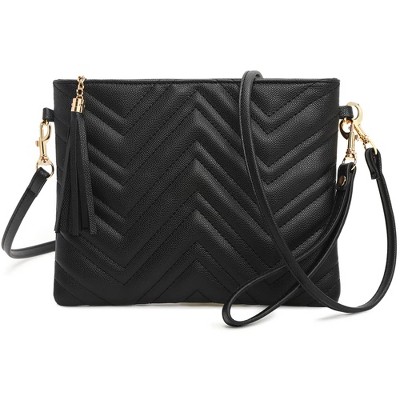 Narwey Trendy Vegan Leather Shoulder Purses, Clutch Wallet with Wristlet Strap,Small tassel Crossbody Bags for Women (Black&Lg)