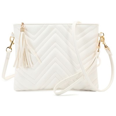 Trendy Vegan Leather Shoulder Purses, Clutch Wallet with Wristlet Strap,Small tassel Crossbody Bags for Women (White&W)