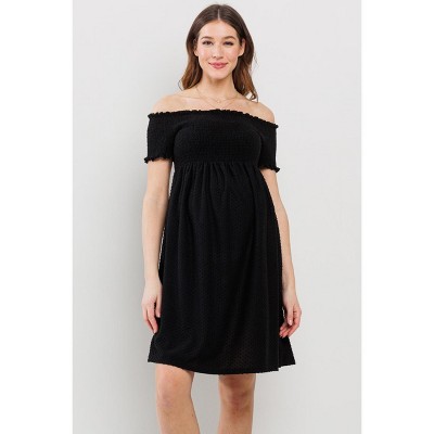 Hello Miz Maternity Swiss Dot Off-the-Shoulder Smocked Dress with Pockets