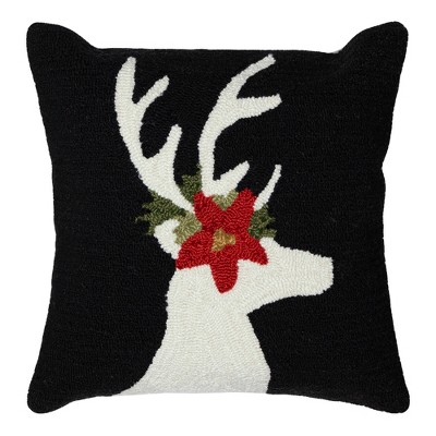 Liora Manne Frontporch Reindeer Indoor/Outdoor Pillow Black 18" x 18"