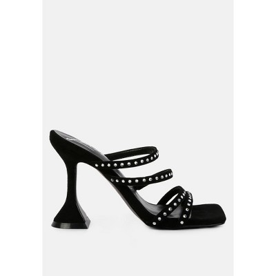 Allegra K Women's Ankle Strap Open Toe Rhinestone Kitten Heel Sandals