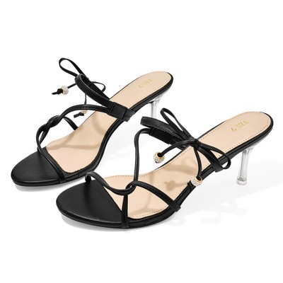 BLISSFUL STEP Bow Knot Open-Toe Stiletto Heel Rhinestone Sandals for Women