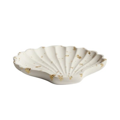HomeRoots 4" White And Gold Resin Handmade Seashell Trinket Tray