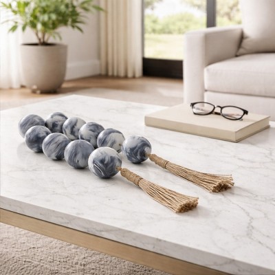 Bead Garland with Marbled Design and Tassels for Home Decor - Decorative Accent for Office, Shelf or Coffee Table Display - 3", Black & White