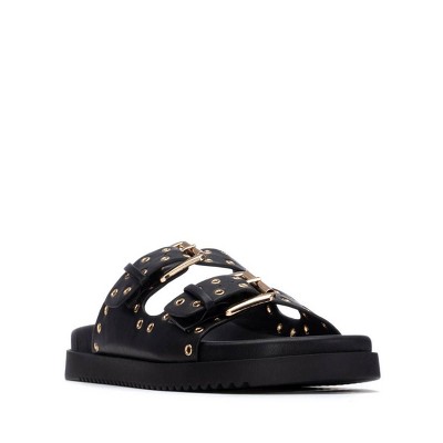 black slide sandals