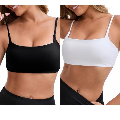 INSPIRE CHIC Women's Square Neck Wirefree Padded Push-Up Athletic Spaghetti Straps Backless Seamless Workouts Bras 2 Packs