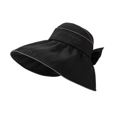 Anna-Kaci Womens Wide Brim Sun Hat with Bow Lightweight Breathable UV Protection Foldable Travel Beach Hat, Black