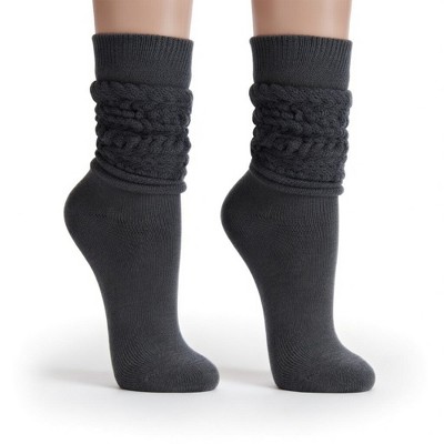 Memoi Pointelle Braid Chunky Knit Knee-High Socks Dark Gray Heather One Size