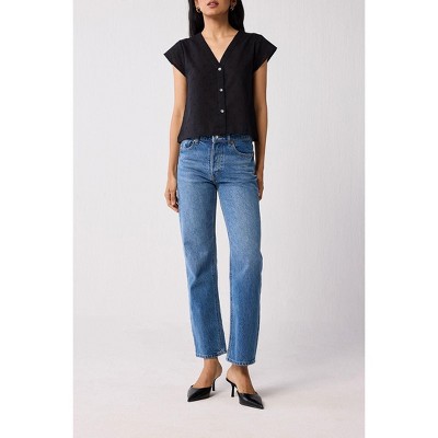 Reistor Women's V-Neck Embroidered Top with Front Buttons in Black XXX Large