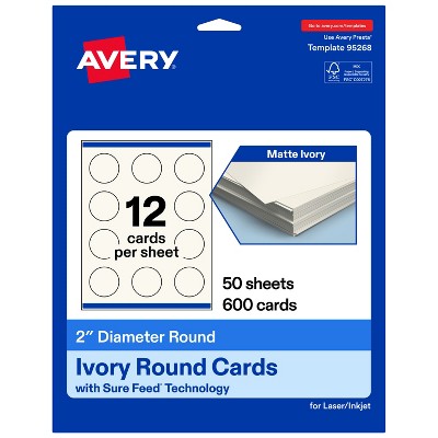 Avery Printable Matte White Cards with Sure Feed, 2" Diameter Round