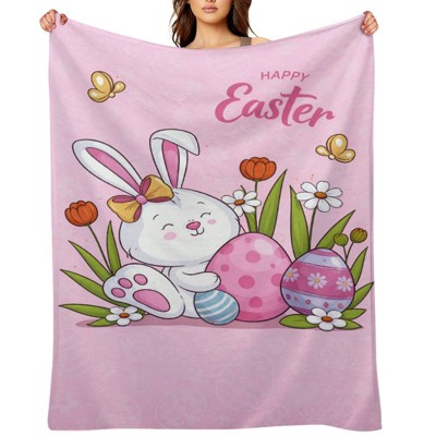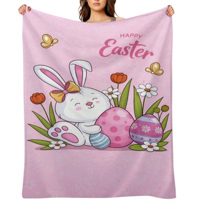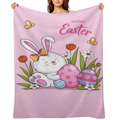Easter Throw Blanket Pink Easter Rabbit Bunny Egg for Couch Sofa Bed Soft Cozy Blanket Cute Spring Holiday Decorative Throw Blanket 60x80 inches