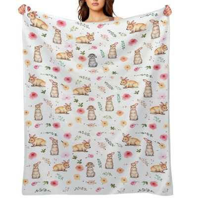 Easter Throw Blanket Watercolor Bunny Floral Chicken Throw Blankets Soft Lightweight Flannel Blanket for Sofa Bed Living Room 60x80 inches