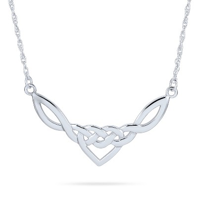 Bling Jewelry Good Luck Friendship Heart Trinity Irish Love Knot Triquetra Infinity Statement Celtic Necklace Collar Pendant Sterling Silver Medium