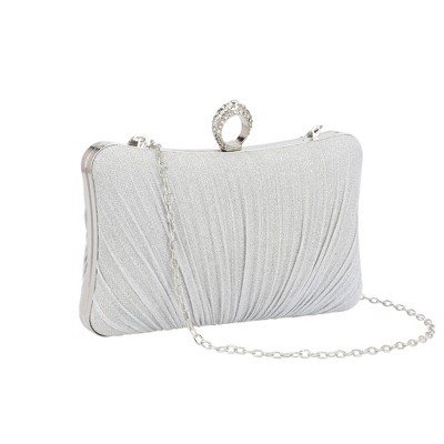 INSPIRE CHIC Clutch Purse Pleated Evening Bag for Women Handbags with Rhinestone Ring