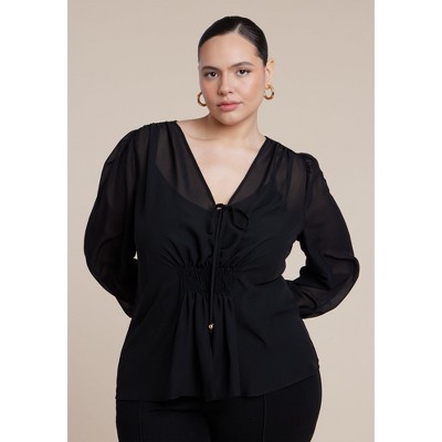 ELOQUII Smocked Sheer Blouse