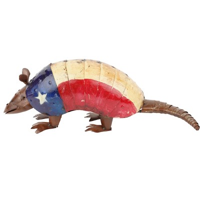 HomeRoots 16" Red Off White And Blue Metal Armadillo Tabletop Sculpture