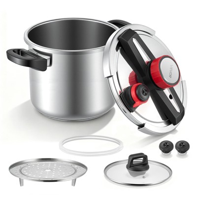 VEVOR Pressure Cooker, 8Qt Pressure Cooker Stainless Steel, Pressures Canner with Steaming Rack, Tempered Glass Lid, Cook up to 100 kPa, Silver