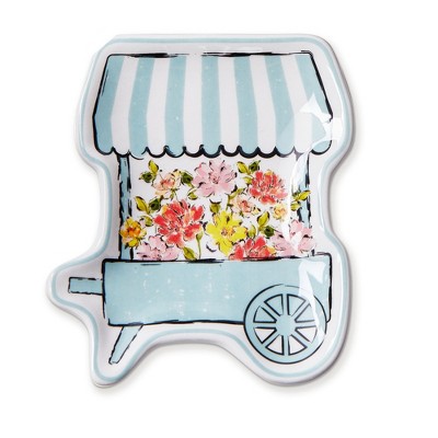 tag Flower Cart Trinket Dish - Decorative Tray for Everyday Use, 5" L x 4.25" W x 0.5" H, Easy Spot Clean