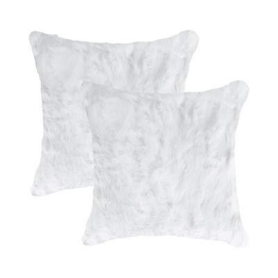 HomeRoots Set Of Two 18" White Rabbit Zippered Natural Fur Throw Pillows