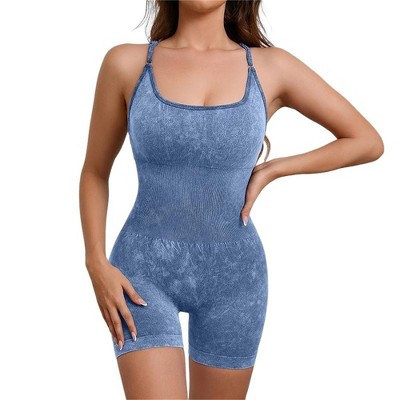 Women's Seamless Ribbed Bodysuit Adjustable Strap Unitard Romper