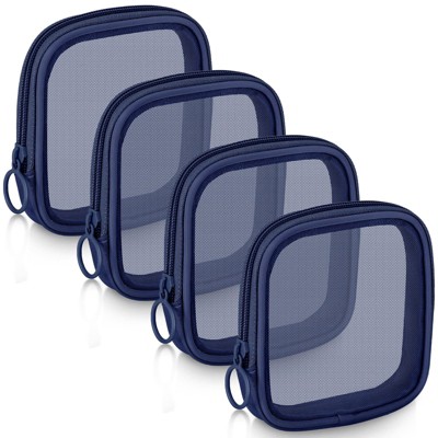 Narwey 4 Pcs Mesh Makeup Bag Mesh Cosmetic Bag Travel Toiletry Pouch (Small,Navy Blue)