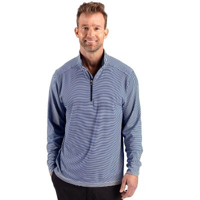 Cutter & Buck Forge Recycled Double Stripe Four-Way Stretch Mens Quarter Zip Pullover - Navy Blue/White - L