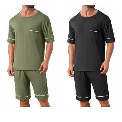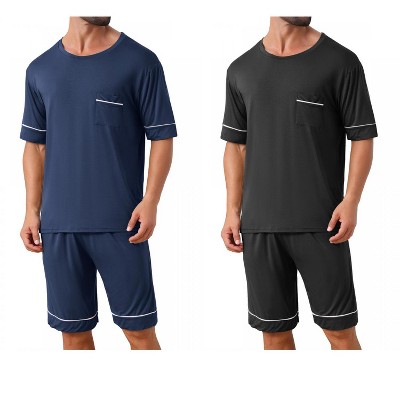 INSPIRE CHIC Men's Summer Short Sleeves Crew Neck Nightwear Pajama Set 2 Packs