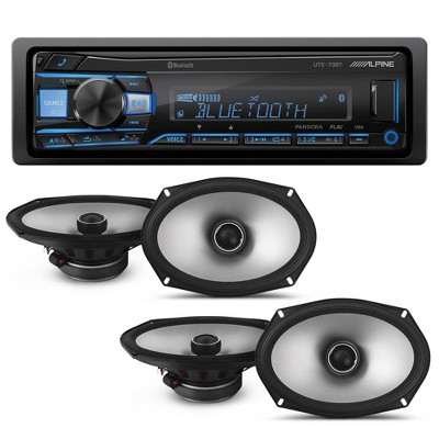 Alpine UTE-73BT Bluetooth® Multimedia Receiver (Does Not Play CDs) with Two Pairs SXE-6926S 6x9" Coax Speakers