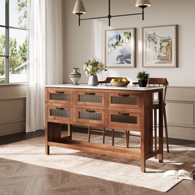 blue-gray kitchen island