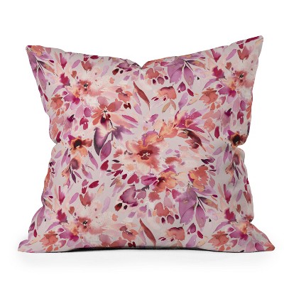Society6 Ninola Design Natural Haze Painterly Tropical Flowers 18"x18" Throw Pillow