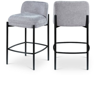 Meridian Furniture,Burton Grey Chenille Fabric Stool, Set of 2