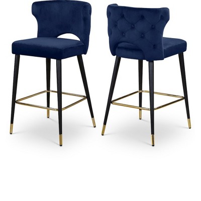 Meridian Furniture,Kelly Navy Velvet Stool, Set of 2