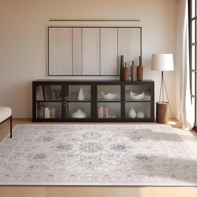 - gray floral rug