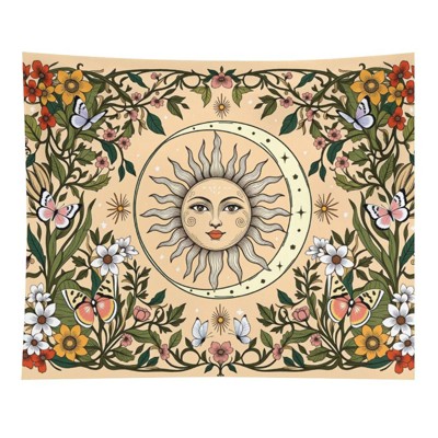 Boho Sun Moon Floral Tapestry Polyester Lightweight Breathable Anti-Pilling Non-Shedding Decor for Bedroom & Dorm 50x60 iniches