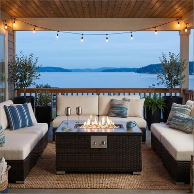 Mondawe Outdoor Rattan Fire Pits, Gas Fire Table With Tiled Tabletop