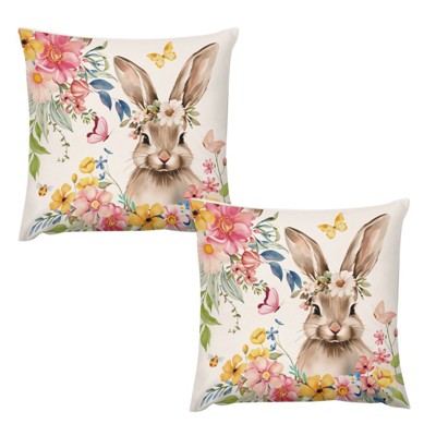 Easter Pillow Covers Set of 2 Spring Flower Bunny Decorative Throw Pillow Covers Easter Decoration Rabbit Cushion Case 18x18 inch