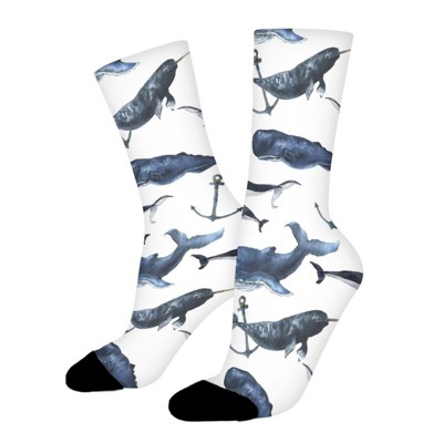 Aquarelle Whales Women Printed Crew Socks Funny Funky Socks Soft Polyester Novelty Gifts for Artists Men