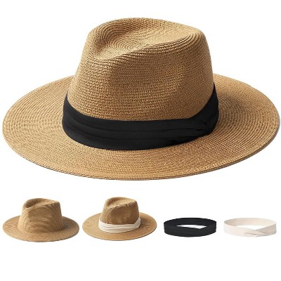 ULTIMEA Sun Hats for Women Men Panama Hat Wide Brim Fedora Straw Beach Hat UV UPF 80+ Beach Vacation Essentials Black-Beige