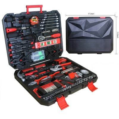 Laukingdom 242-Piece Tool Set with Plastic Toolbox, Household Hand Tool Kit for Home Maintenance & DIY, Black/Red, 1 Set