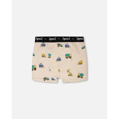 Deux par Deux Boy Organic Cotton Boxer Beige Truck Print