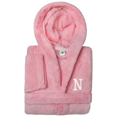 Personalized Linum Kids 100% Polyester SUPER PLUSH Double Brushed Hooded Bathrobe in Pink Bookman Font