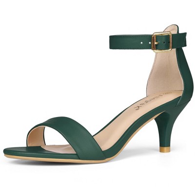 Allegra K Women's Faux Leather Adjustable Ankle Strap Kitten Heel Sandals